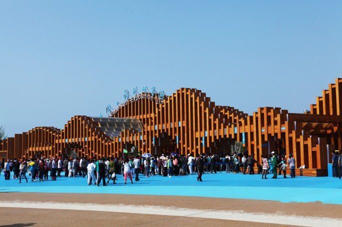 这次世博会的主题是:城市与海 和谐未来 看这大门,像不像层层叠叠的海浪?