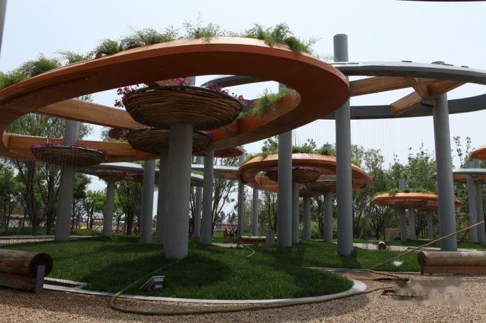 世博园人性化设施做的还是不错的,随处可见这样的长椅,供游客遮阳休息!