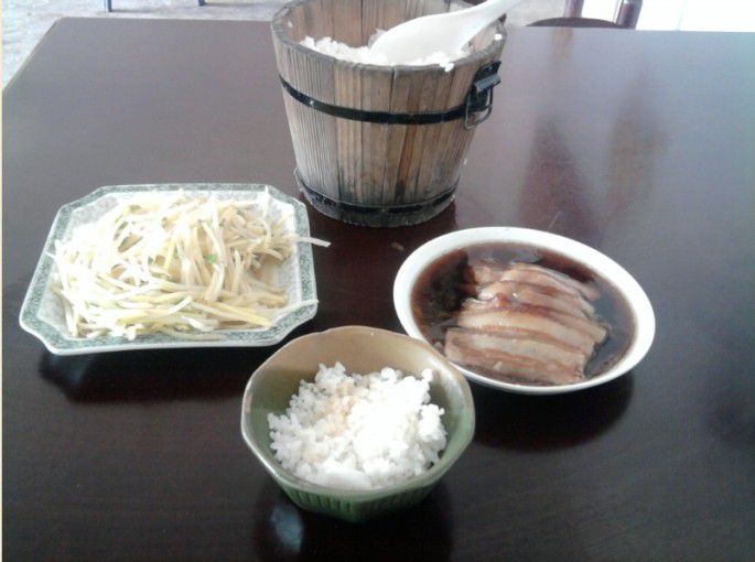 6.5日早8点从西昌坐大巴,中午在盐源吃的饭,都说山里的肉味纯正,特意要了份扣肉,的确比城市的肉香,薄薄的肉片有点肥,还是就着蔬菜吃光了哈,经过近8个小时的车程,下午4点左右到达了木里县城客运站,背着包出了车站想打个车去木里宾馆(网上有人提到不错的驻地),3元钱的黄色三轮车带我去了木里大酒店。