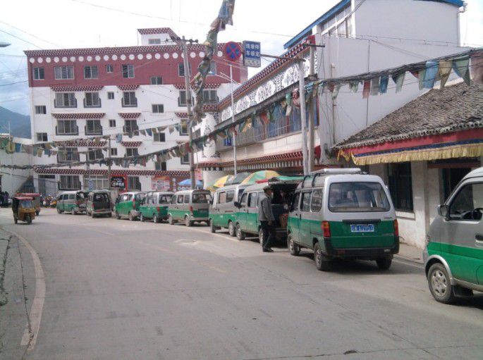 下午5点左右的车站里人很少,告知售票员买明天长海子和后天瓦厂的票,“瓦厂的票明早8点30来买”,“我8点10分去长海子了没法买。”“你可以叫你住的地方人帮着买,你住哪?“木里大酒店””太远了不行。“我自言自语了句:明天回来再说。拿着长海子的1号座位票离开了(在山区坐车一定要买保险哈)。