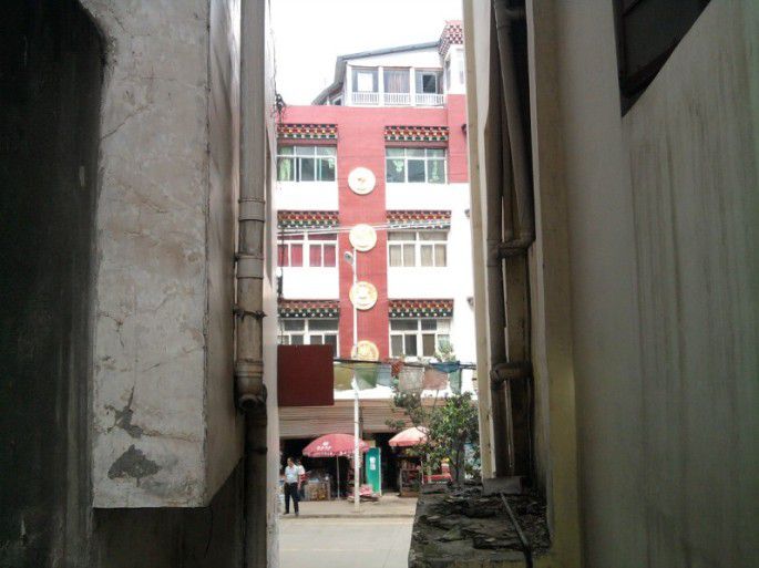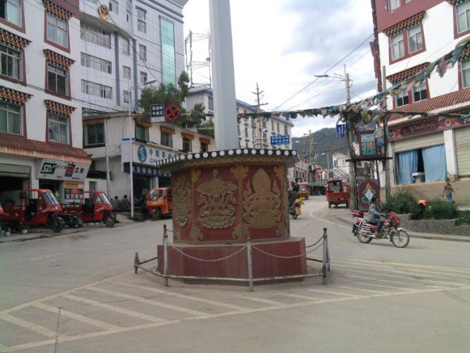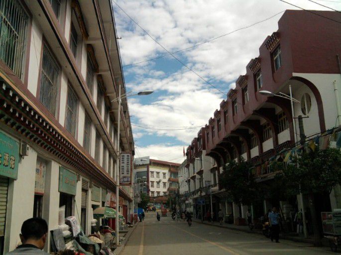 从西昌来木里一路的山色、河流缓解了一些旅途的疲劳,有几个女学生见到高山杜鹃兴奋至极叫个不停,还有树上开着黄色花的她们说是蝴蝶花,自然想起了水木年华的“蝴蝶花”不知是否此花而来?后来近处看了花的叶片是像蝴蝶。第一次坐车走这么久的山路开始有点怕,到了县城也感觉有点倦,进了房间放下东西洗了洗,状态好了许多,下楼问了下前台女孩去长海子的事,得知提前一天买票保险些,当天买可能会没票。那就先去买票,出了酒店的巷口左拐走了不到百米到了街的尽头,再左拐上了一个坡上了县城的另一条街又左拐,顺着街道溜溜达达浏览着两边的特色建筑和店铺,走了大概30分钟左右到了客运站,买次日去长海子和后天去瓦厂的班车票。