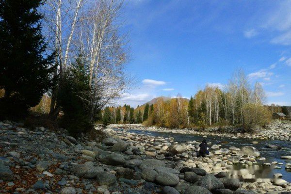 禾木村的白桦林绝对够震撼,漫山遍野都是,我们沿着河边一直往深处走去。