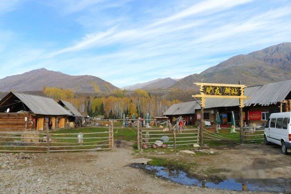 走过了很多山路,一直到禾木的售票处和换乘处。按照要求,进入禾木的不允许有社会车辆,必须统一换做景区的区间车。所以从这里开始,我们都要拿上必须的行李,换乘景区的车进入禾木啦。