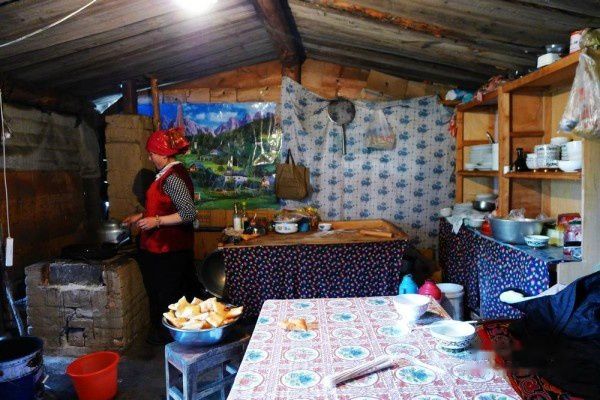 正在给我们炸巴尔沙克的哈萨克族妇女,其实不是给我们炸的,是给要来住店的客人炸的,客人还没到,我们就先吃啦,哈哈