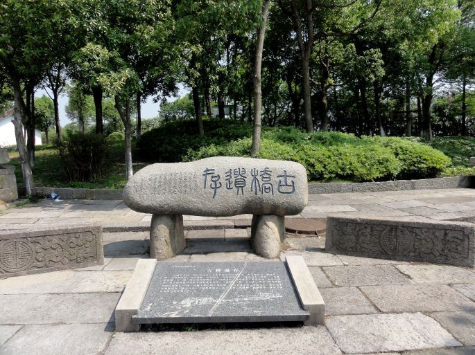 纤道石板均用自于古石板,整个纤道长108米。据介绍上说:由数十座古桥石梁合成,其石梁之宽厚、历史之久、数量之多,在整条运河上绝无仅有。