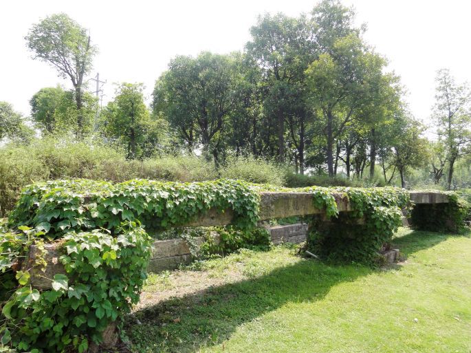 被爬山虎几乎铺盖全身的乌龙桥石板,类似这样的古桥石板景区内有好多条。