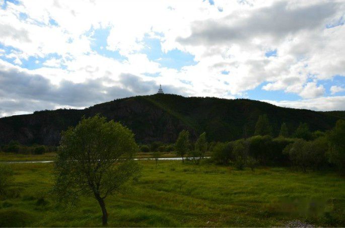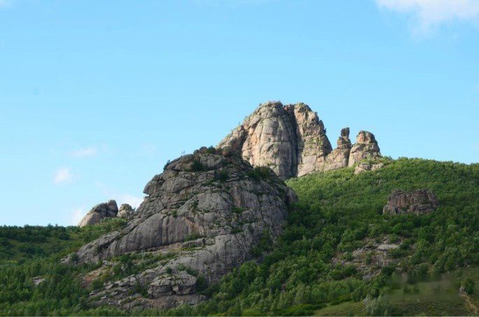 下午三点半,正当我们迎着太阳在层峦叠嶂的密林中穿越时,我们远远地看到前方一座高峻峭拔的山峰,就像是镶嵌在林海中的瑰丽钻石一般,分外醒目耀眼。那就是巴林喇嘛山。“奇存于峰云之间,幽融于峰洞之中;险散于峰峦之壑,峻显于峰岩之顶”。我们心情亢奋了。喇嘛山依山傍水,树木环绕,景色幽静。中国最大的玉石佛就供奉在此。