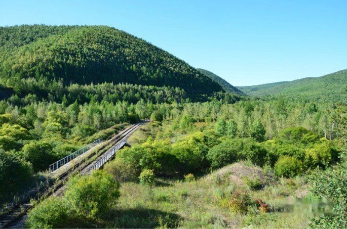 我们在行进的路旁,看到了日本鬼子上世纪侵略我国时修建的环山铁路和设施。工程质量的坚固,也许是我们可取得。这里是大兴安岭最高地段,过往兴安岭的铁路、公路都要环绕山头盘山而上,过了兴安岭再盘环而下,从工程技术上看,100多年前的设计施工,可以说很了不起。