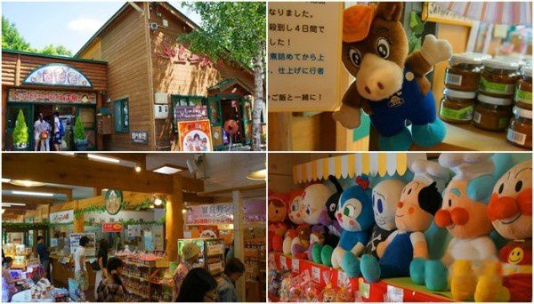 13:05 从麓鄉展望台下来不远,就是一排卖店,包括富良野果酱园(ふらのジャム園)和面包超人专卖店(アンパンマンショプ)。为追求可以让人安心使用的食材与美味,1973年幼大久保婆婆创立的会员制的共济农场与富良野果酱园。日本蓝莓、玫瑰果、山葡萄、木莓等38中手工制作的果酱,以全天然的果实和共济农场的有机蔬果制成。哈密瓜、胡萝卜、甜菜根等野菜口味非常受欢迎。店家非常大方让游客一一试吃,配上简单的白吐司或是小鱼饼干。价格上与国内产的日本牌子丘比果酱相比高出三倍。在这里还可在专业店员指导下制作自己的手工果酱。此外果酱园内还有售卖冰淇淋[270yen]。