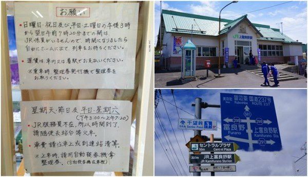 10:11 回到上富良野车站,站内观光案内所的职员正在流水线作业,手工包装一小袋一小袋的薰衣草干花。外窗上贴着的字条顿感熟悉。车站工作人员的工作时间是周一至周六7:20至15:00。