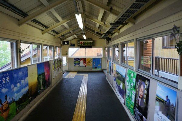 原计划应该在上富良野车站搭乘10:36列车,并于10:54抵达富良野,在11:50开始Twinkle Bus富良野号行程之前,有近1小时的时间可以吃午餐或者回一次民宿。然而,此时10:17有一趟开往旭川的列车进站,我们竟直愣愣地以为搭乘这趟车能够提前赶回富良野,结果上错车了。列车开始在一座座丘陵中穿梭着,发现怎么不是来时的稻田和花田风景,这才突然意识到坏了。这站路很长,赶紧拿出时刻表来看,下一站是美马牛,抵达时间是10:26。再看从美马牛去富良野的车正好也是10:26。果然在抵达美马牛的时候,对面那辆车无情地离我们而去。没有办法去站台吧,此时想到最差的结果也是唯一的办法就是打车回富良野,再去赶Twinkle Bus,但这样一来打车的费用会大大超过Twinkle Bus车票的费用。到了美马牛车站,里头好多台湾游客。看到了站内时刻表,心里长舒一口气,有希望了。这次来拯救我们的也是唯一能赶在11:50到富良野的一趟车,是10:51的 富良野美瑛ノロッコ1号。