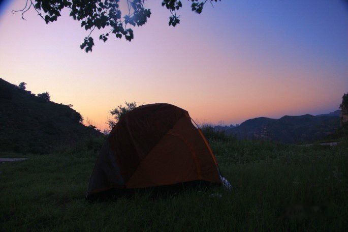 在帐篷外能看到满天的星星,可惜俺的技术不行没能拍出那美丽的星空。整个山顶上只有我们两个人,听到的只有那呼呼的风声。远远的能看到正在修的邢汾高速上的灯光,也像星星一样眨呀眨的。