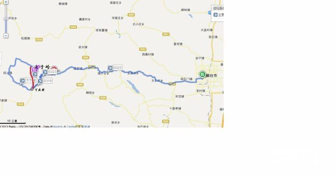 | 去夫子岭的路线图,因去的路上没有注意上庄村的路口,误走到拐儿村绕道到的夫子岭,但是那段路的上景色很美。全程114公里,如果不绕远是100公里(我这说的是单程)。 |