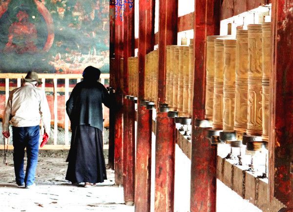 桑耶寺人真的很少,让人可以有足够的时间和空间,以及清空的思绪在时空的洪流里寻找自己。藏族是一个多么会运用色彩的民族,美得让人似乎能听到天与地的对话。转经,是一种信仰,更是一种习惯。