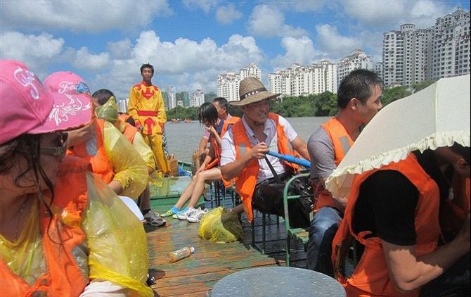 在网上选择好想租的车,并预定好。如果想过夜的话也可以在网上预定到价格很优惠的酒店噢,司机会提前一天和我们确认好出发的时间和地点。朋友给我推荐了一个网站,他曾经在这个网上预订过,他说出发当天司机就会开车来接我们。我们打算趁着周末玩两天,听说万泉河漂流很好玩,所以让师傅带我们去了。在万泉河还可以坐竹筏游玩,登上小竹筏之前一定要买一次性雨衣,会被淋成落汤鸡。