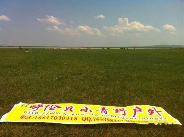 小陶的户外俱乐部条幅,静静躺在草地上。