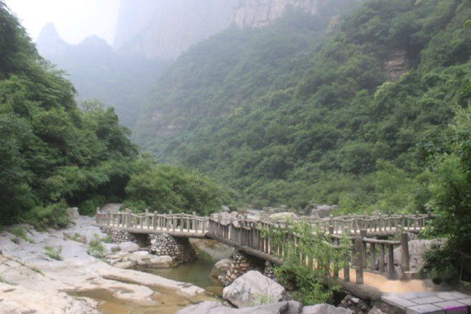凡间的栖身之处。总长约3公里,两岸高峰耸立,气势恢宏。峡谷内,-高处群山如画屏,山中花木如锦绣,脚下清溪如云流。奇石、山泉、花香、飞瀑组成沟谷交响曲。峡谷的尽端是落差314米,雄冠九州的全国最高大瀑布--云台天瀑。远远望去,只见它上吻蓝天,下蹈石坪,犹如擎天玉柱。其声震耳欲聋、其势磅礴如宏,景色十分壮观。此外,还有"五老峰"、"路功"、"七品芝麻官"、"仙渡"、"孔雀泉"、"私语泉"等景观;泉瀑峡山势高峻挺拔,水流急湍深邃,是云台天瀑的前奏,水势练达有力的落势,在此处就初现端倪,它上吻蓝天,下蹈石坪,宛若银河飞落,犹如擎天玉柱,蔚为壮观。沿峡谷逆水而上,多孔泉、私语泉、幽潭、吟龙瀑等景点将游客带入一个如梦如幻的人间仙境。