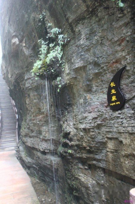 7. 孔雀泉,一组悬泉,银瀑高挂。在泉瀑下方绿荫遍布,串串水珠自然垂落,在阳光下灿灿放光,恰似孔雀落在山涧。