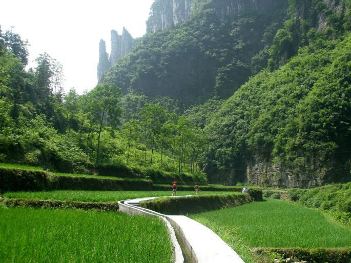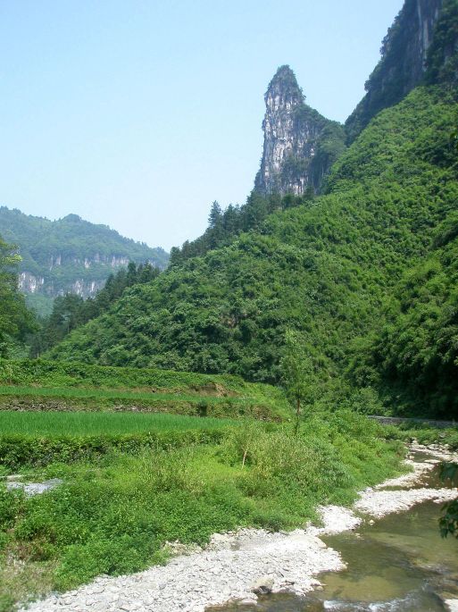 就这样我们一路欢声笑语相互鼓劲,就当来此山中旅游,心情豁然开朗!想想昨天在凤凰古城的街头巷尾穿梭,**如织,心烦意乱。此时杳无人迹,空气清新,自然景色显得格外秀美。离开大城市钢筋水泥的包围,来到这乡野田间,不正是我们出来旅游,呼吸新鲜空气的目的吗?