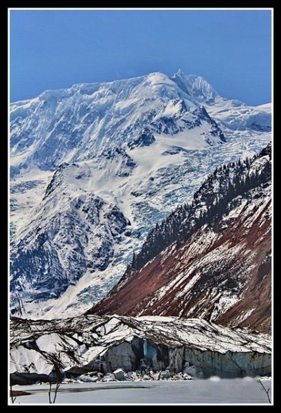 今天的行程是距波密县扎木镇90多公里的米堆冰川,米堆冰川主峰海拔6800米。米堆冰川由两条世界级冰瀑布汇流而成,冰瀑布之间分布着一片枯枝的树林。米堆冰川高处随处可见晶莹闪烁的冰盆绝壁,动人心魄。