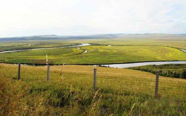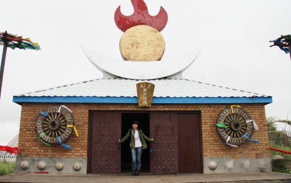 汽车在蒙蒙细雨中行驶,出了海拉尔,径直向北。汽车稳稳急行,沿途都是笔直平坦的公路,两侧全是空旷的牧场,远处隐约有些不高的山丘。很快到了金帐汗,仿照当年成吉思汗行帐的蒙古包,因“第一曲水”而出名,因为旅游,已过度开发,破坏了大片草原。我们随便进去逛了一下象征性地留了影就出来了。