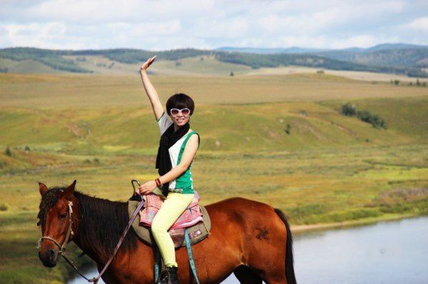临江早上起来骑马去南山,景致优美,一趟来回一百元,回来的时候蒙古小伙还带着我跑起来了,体验了一把马背上奔腾的感觉~