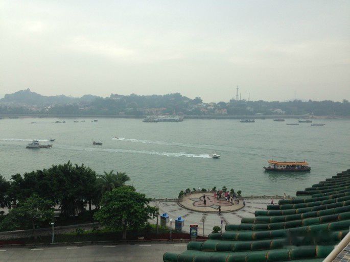 果然可以望到对面的鼓浪屿,不过天气依旧闷热,本来想坐室外的我们,最后选择了有空调的室内