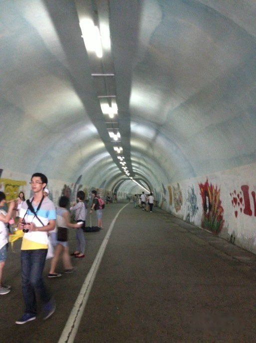 刚好下了大雨,我们就来到这个很有名的涂鸦隧道内避雨,外加欣赏学生的作品