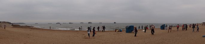 旅店离海滨浴场很近,走路大概10-20分钟即到。通往海滨的路上,有一条卖特产的小街,我们边走边逛,大概得走了1个多小时才到海边。因为遇到天气降温,海边风凉,也没敢踩水,赏赏景、踩踩沙子我们就回了,倒是买了不少特产。后来比对了其他地方,在这里买特产还是很合算的。最好不要到景区的周边去买,同样的东西,价格至少要翻上一翻。