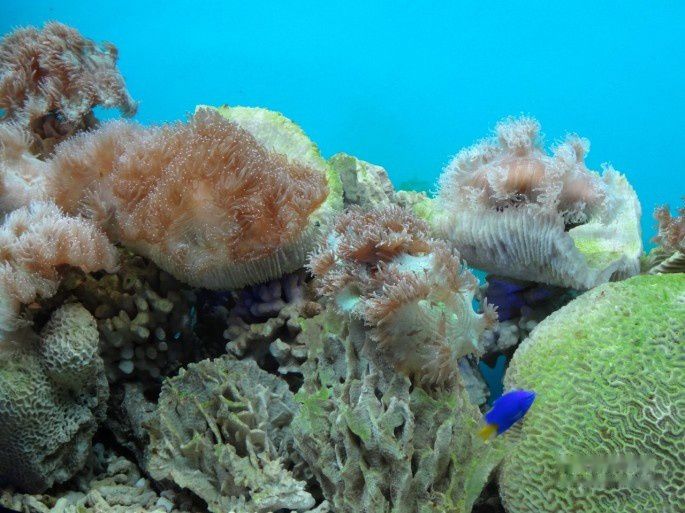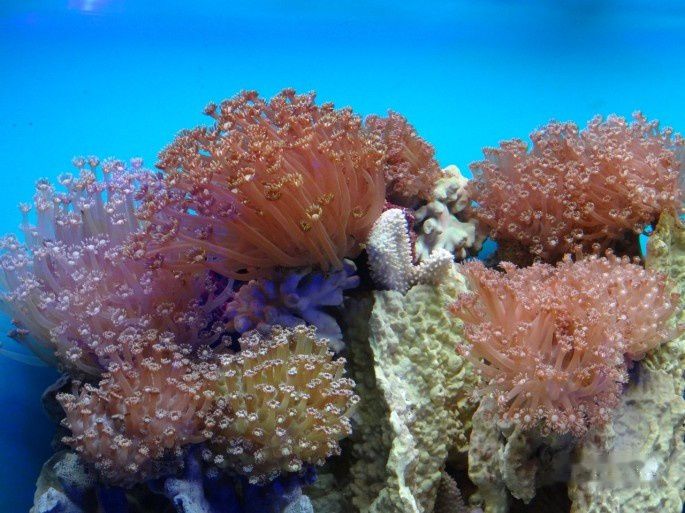 公园里有活珊瑚展览,各式各样五彩缤纷,用相机一一记录下来。