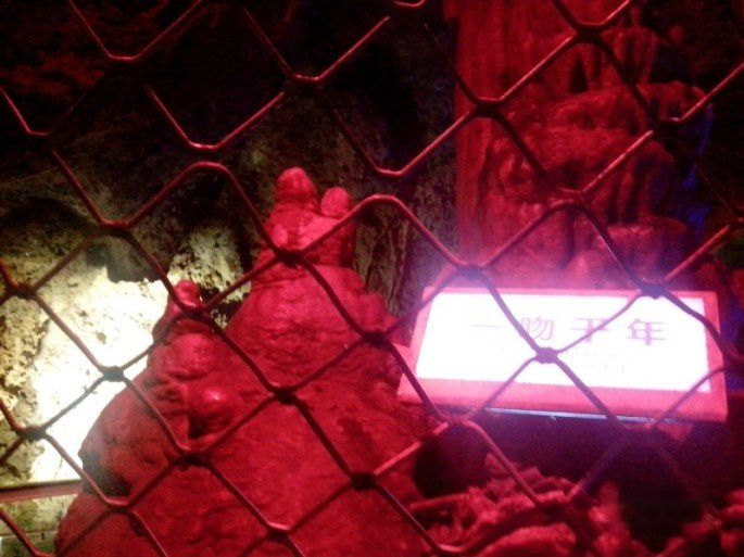 这个是“一吻千年”,和上面的“千年一吻”一样,寓意爱情长久,左面和右面的钟乳石像两个小人紧紧抱在一起,很多情侣在这里合影哦~