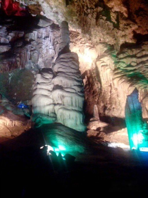 这个是“千年一吻”,上面和下面的钟乳石经过千年的时间,才形成现在我们看到的这个样子,寓意爱情长久。