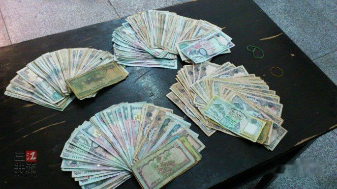 我们一行六人换了近二十万尼币,大家都是穷游,看到这么多钱,感觉一下子成为了有钱人,于是都摆在一起,拍相片做记念!