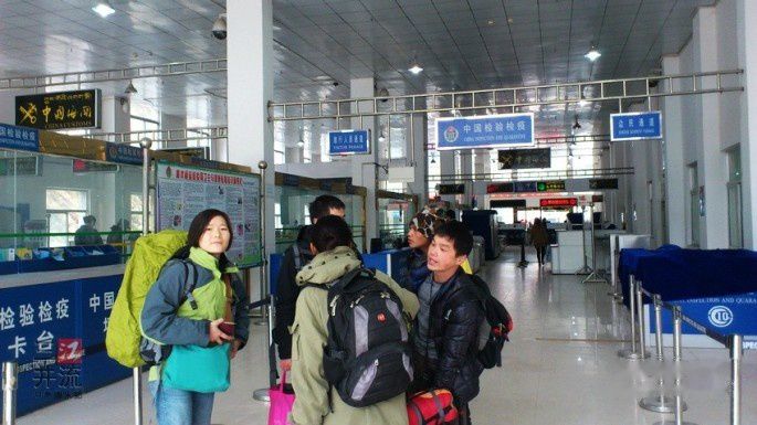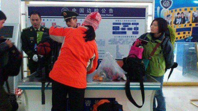 口岸的工作人员在检查我们的行李,必须把包打开一件件的翻开检查,女生的包也要翻,看是否带了违禁物品!