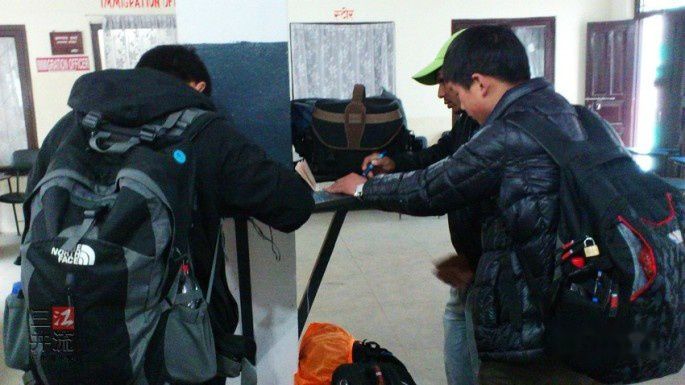 到了尼泊尔还要签一个入境证,全是英文,我们互相翻译大家认识的单词,终于把表填完,说如果不会填,这也有人帮你填,收费200尼币!