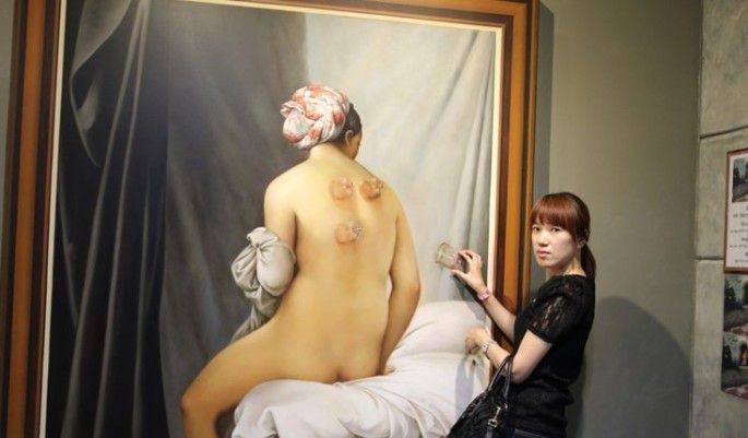 从相框里掉出来的拔火罐,真让人错乱,呵呵~整个立体效果让人惊叹又不失幽默