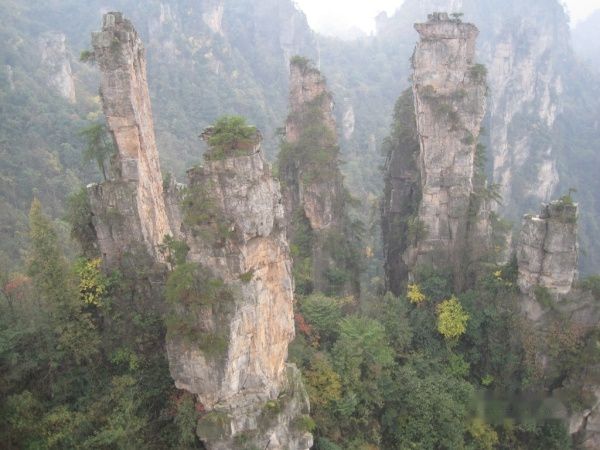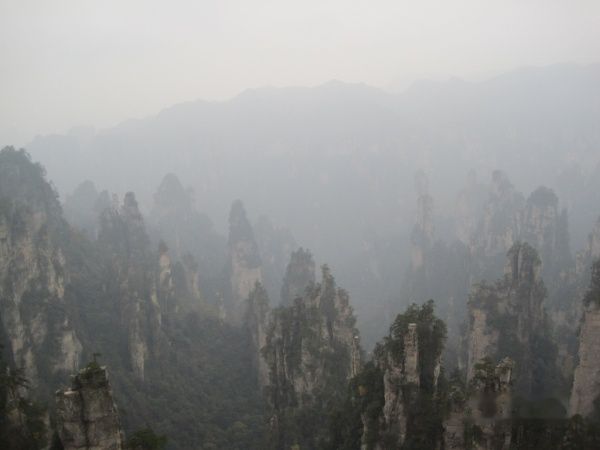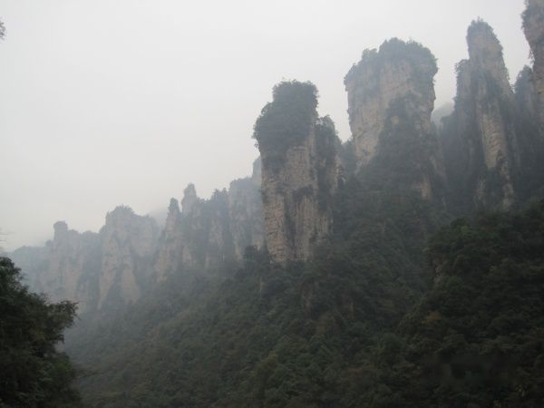由于赶时间,从天子山坐索道下山,在索道上看到的张家界又是另外一番美景,忽然发现山上的树顶被一层白白的东西覆盖着,原来下雪了,可惜没能拍下来,成了遗憾。