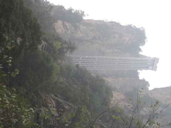 张家界的第二天早餐后,游览袁家界,第一次体验了坐“天梯”,这真是世界第一,在高高的山上修建了一个观光电梯。