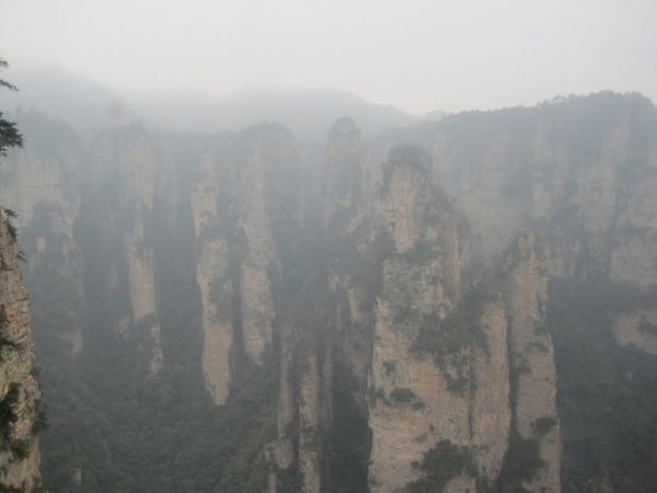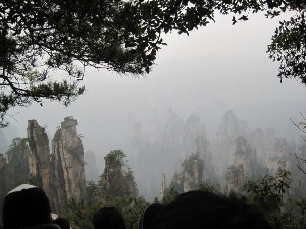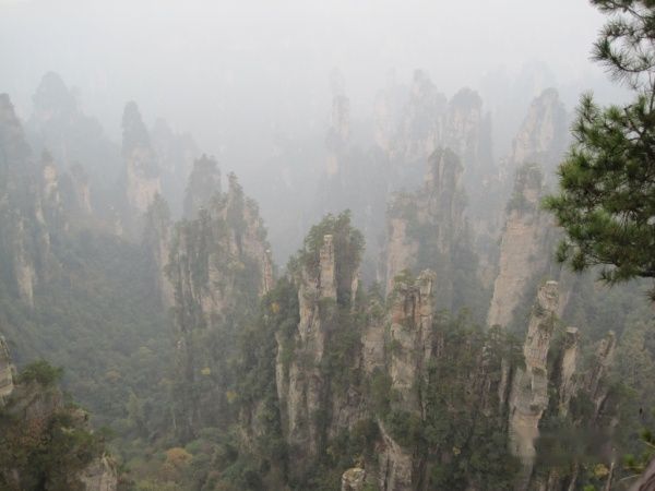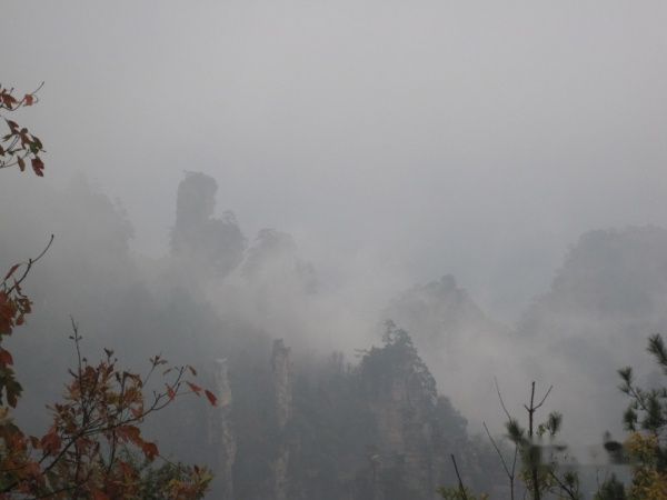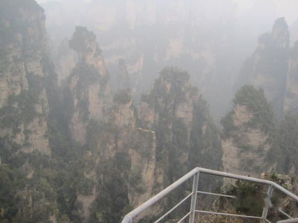 从美丽的袁家界来到了天子山,由于雾逐渐大了,还有点小雨,到了天子山基本看不到什么了。