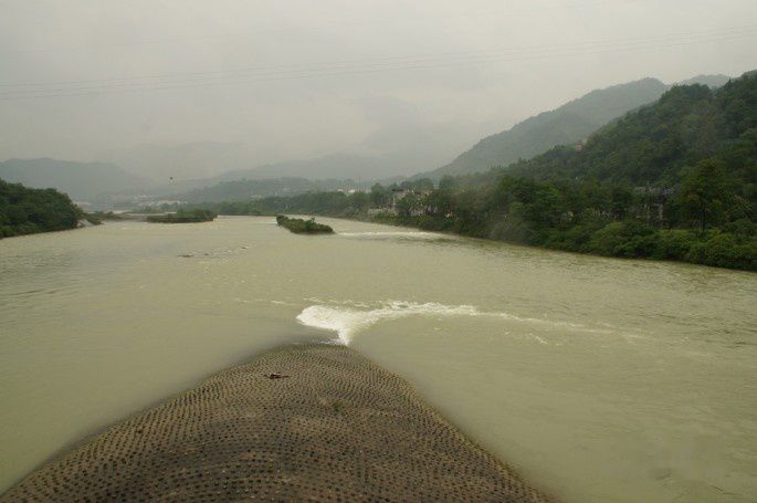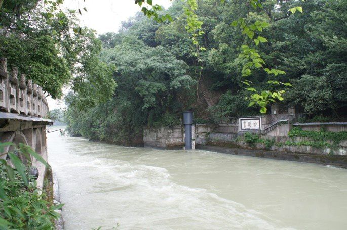 我们一路向前,来到了宝瓶口,它是湔山(今名灌口山、玉垒山)伸向岷江的长脊上凿开的一个口子,它是人工凿成控制内江进水的咽喉,因它形似瓶口而功能奇持,故名宝瓶口。