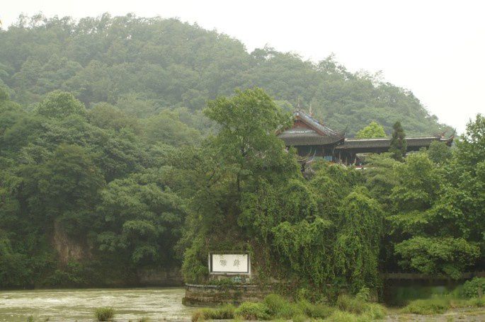 留在宝瓶口右边的山丘,因与其山体相离,故名离堆。宝瓶口宽度和底高都有极严格的控制,古人在岩壁上刻了几十条分划,取名“水则”,那是我国最早的水位标尺。可见古人当时就对治水之道有自己严格的一套规章制度了。我们一路走走停停,雨也时下时停,倒是也多了几分意境。