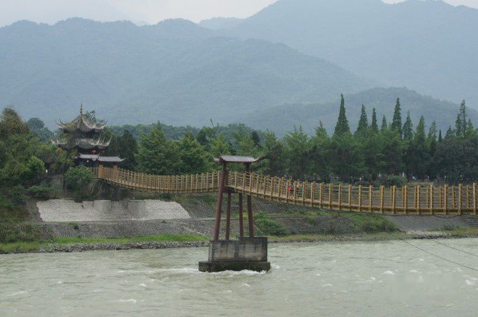 欣赏完了鱼嘴,我们又走过安澜索桥,我们来的当天,游客并不多,所以索桥看上去十分安静,或者还有些娇羞。