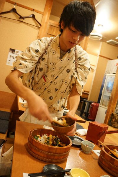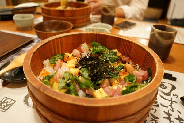 到东京的第一顿晚餐。酒店附近的日料店。菜单完全看不懂,结果旁边桌的日本人听到我们说英文,住过过来帮忙翻译解释,结果我们半蒙半猜的点了两份海鲜拌饭,每份大约人民币200元,吃了一半正太服务生还会拿汤过来把饭扮成泡饭,等于一饭两吃,太美味了。
