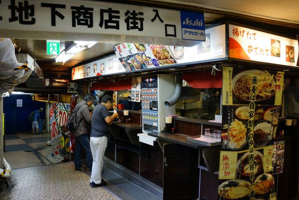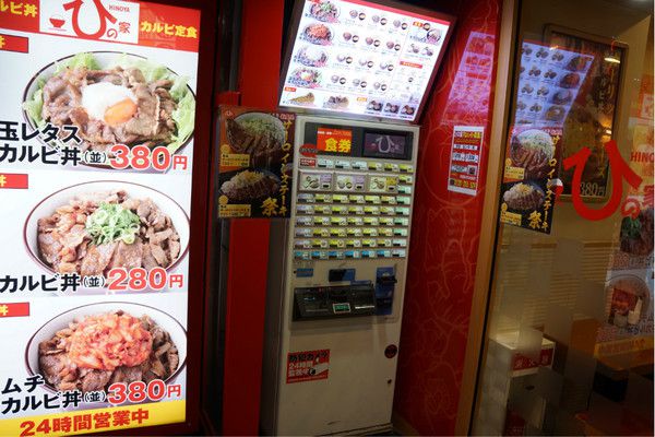 地下铁入口的小饭馆。自助投币购买的机器在很多地方都有看到。