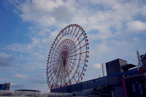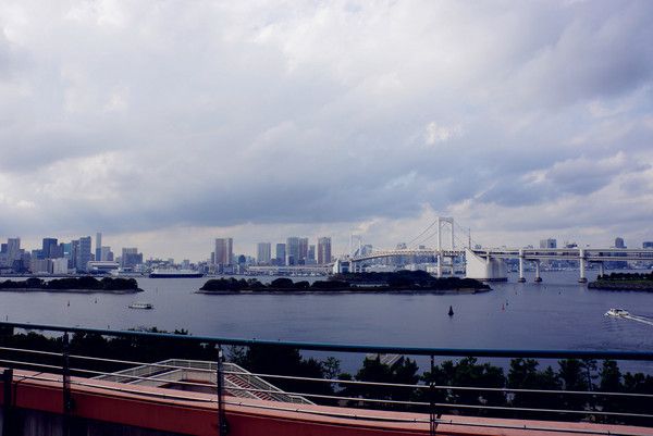 好在吃饭的环境不错。坐在露天可以看到彩虹大桥,很漂亮。果然台场是个很适合谈恋爱的地方啊,有海有摩天轮,真够浪漫的。