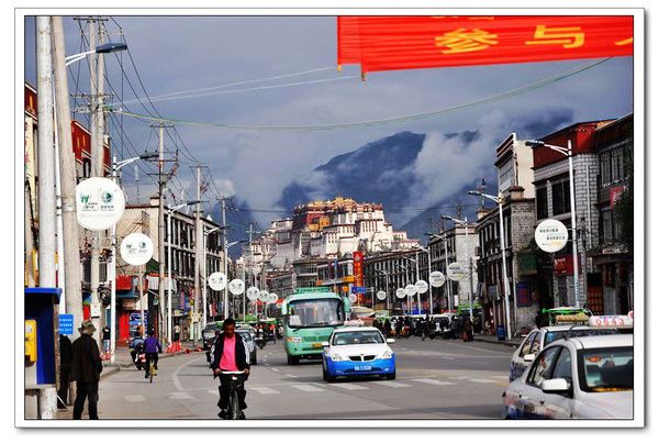 飞机于下午两点到达贡嘎机场,贡嘎机场给人的感觉好荒凉。乘坐机场大巴(车票25元/人)一个小时到达拉萨,机场大巴停靠点就在布达拉宫附近,第一眼看到布达拉宫的感觉是她竟如此瘦小。打了三轮车去八朗学,三轮车在北京路上飞驰,我的感觉初见拉萨比我想象的繁华,北京路两侧有很多品牌专卖,大的商场和超市。北京路上车也很多,我们的三轮车就在各种各样的交通工具中腾挪躲闪。