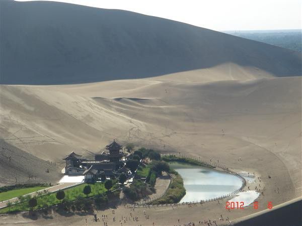 一路沉默,一路积蓄力量。去鸣沙山没有好的体力可不行哪。回到市郊才3点半钟,找地吃完正式的午餐,时间已是4点半了。这个时候去鸣沙山正合适。