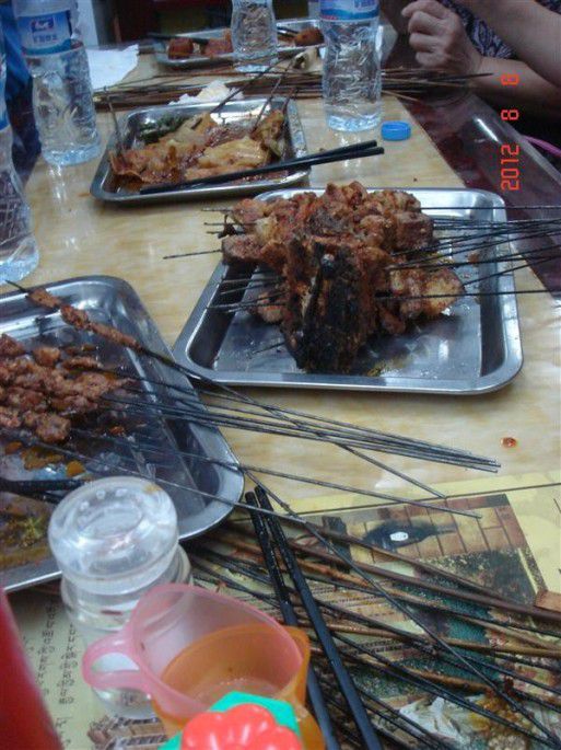 带着遗憾,我们直奔水井巷,那里是旅游者的乐园,有藏品店、特产店,还是远近闻名的小吃一条街。羊肉串1.5元、羊排60元/斤,我们要了50串羊肉,小孩乐坏了。