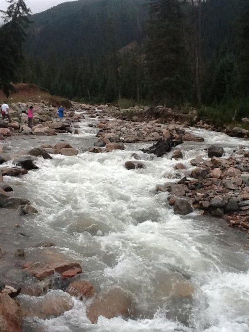 湖水清澈透亮,冰凉冰凉的,儿子穿着溯溪鞋还下去试了试。其他人则围着摊档挑选手工饰品。看看玩得差不多了,就着天空飘着的小雨,我们都钻进车里,直奔宿营地去了。司机说了,黑马河那里有自行车出租,可以在那里骑车。大家明显很尽兴,之前被藏民强迫买高价“门票”事儿已经烟消云散了。
