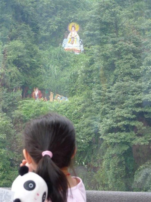 坐缆车时还看到山壁上的一个观音像。